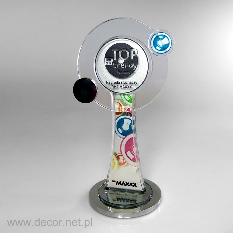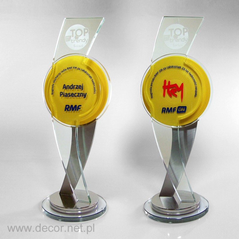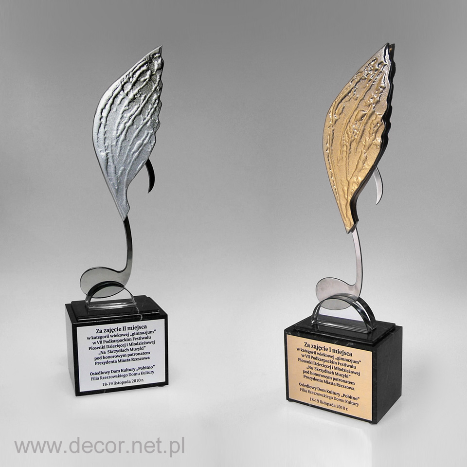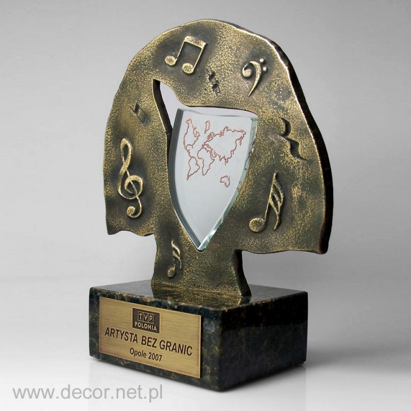 Wielkie gale, uroczystości, plebiscyty czy konkursy muzyczne to wydarzenia, na które czekają artyści, dla których zdobycie nagrody jest ukoronowaniem ciężkiej pracy włożonej w osiągnięcie sukcesu. Produkcją nagród i wyróżnień, jakimi są statuetki muzyczne, zajmujemy się od ponad 25 lat. Producenci dużych imprez muzycznych wymagają najwyższej jakości oraz nagród wyróżniających się wyglądem. Dzięki doświadczeniu i zaangażowaniu w to, co robimy, mieliśmy przyjemność wyprodukować nagrody na takie imprezy jak: TOPtrendy Festiwal, Artysta bez granic, Festiwal Piosenki Dziecięcej, Europen Music Meetings.