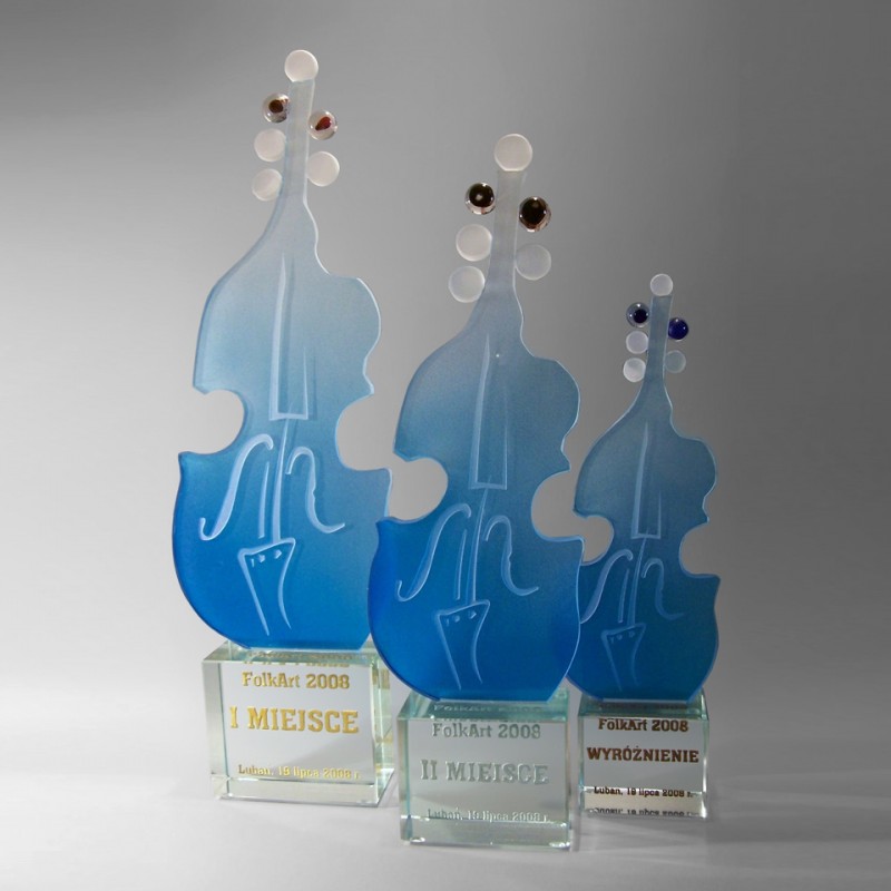 Statuetki muzyczne – produkujemy z takich materiałów jak szkło, metal, drewno, wykonujemy również jako odlewy brązu, mosiądzu lub aluminium. To, co szczególnie wyróżnia nasze prace to możliwość łączenia różnych materiałów w nieszablonowych wzorach.
