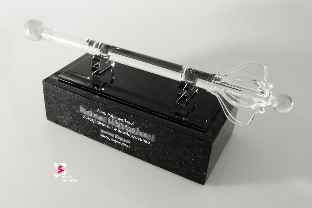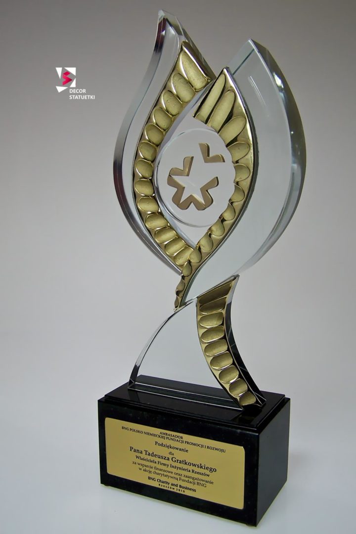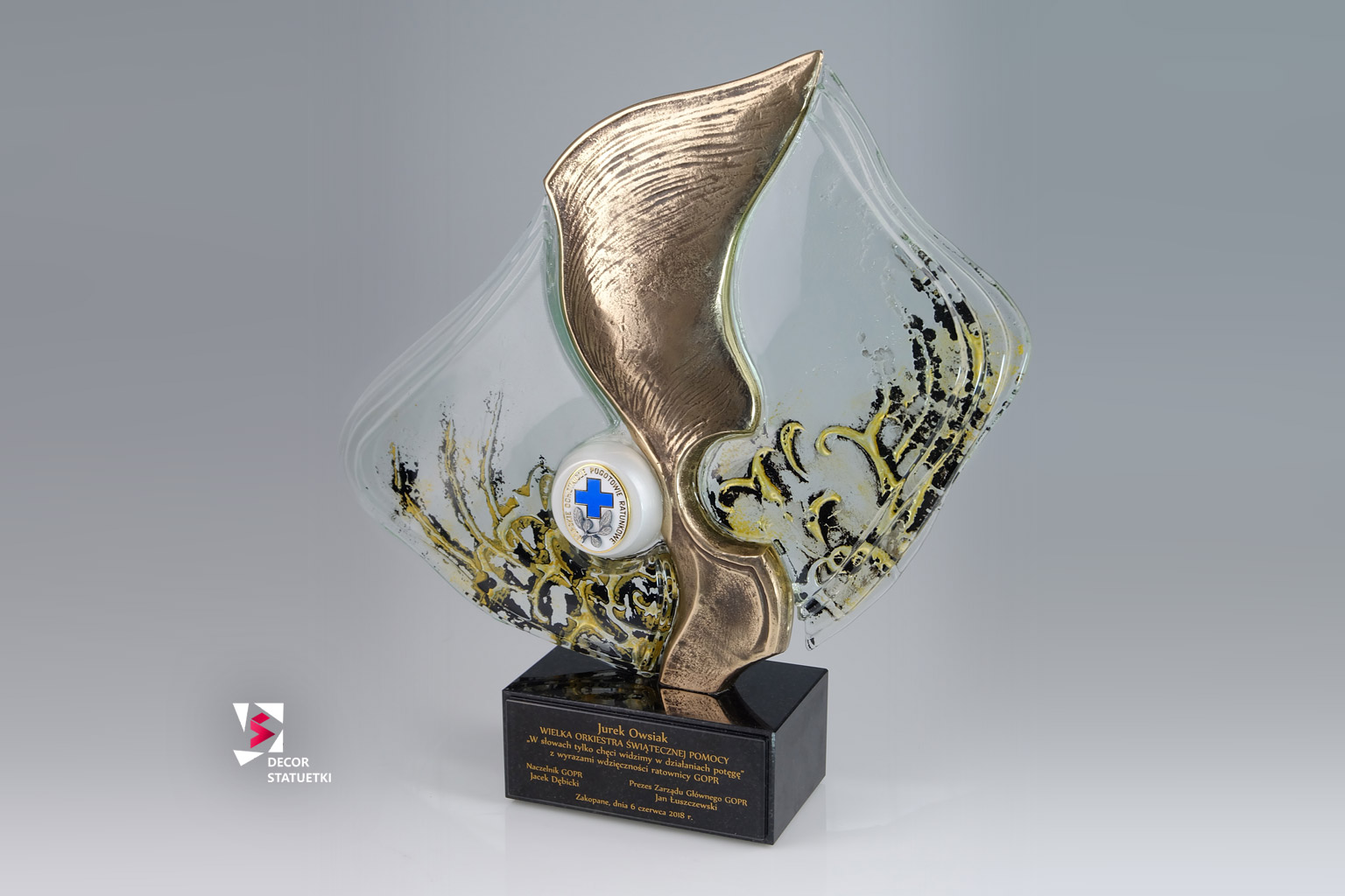 Poniższe realizacje są najlepszą rekomendacją naszych możliwości. Bezustannie staramy się sprostać każdemu wyzwaniu, podejmując się wykonania, często bardzo skomplikowanych projektów. W naszej ofercie znajdą Państwo wiele szklanych statuetek. Specjalizujemy się w łączeniu szkła z innymi materiałami, m.in.: stal nierdzewna, mosiądz, brąz, drewno, granit, kamień rzeczny, tworzywa sztuczne, itd. O naszych możliwościach technologicznych szerzej można przeczytać tutaj.